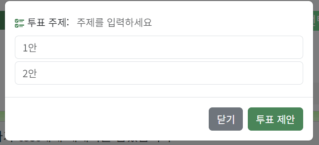 - 투표: 원하는 주제로 투표 옵션을 만들고, 투표할 수 있다.