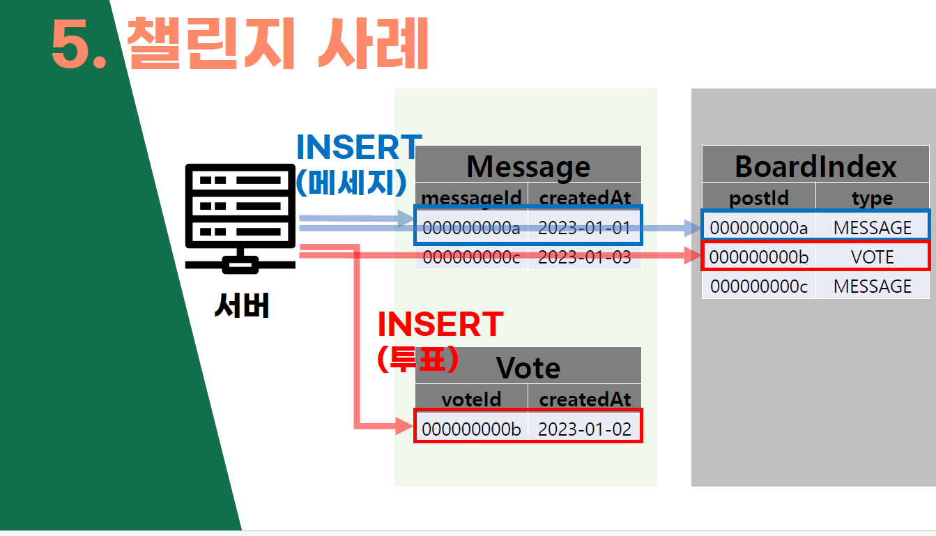 - 어려웠던 챌린지 사례를 메인 게시글 조회를 위해 따로 만든 테이블의 이야기를 들었는데, 기술적으로 아쉽고 다른 사례들을 찾아보고 적용했으면 어땠을까